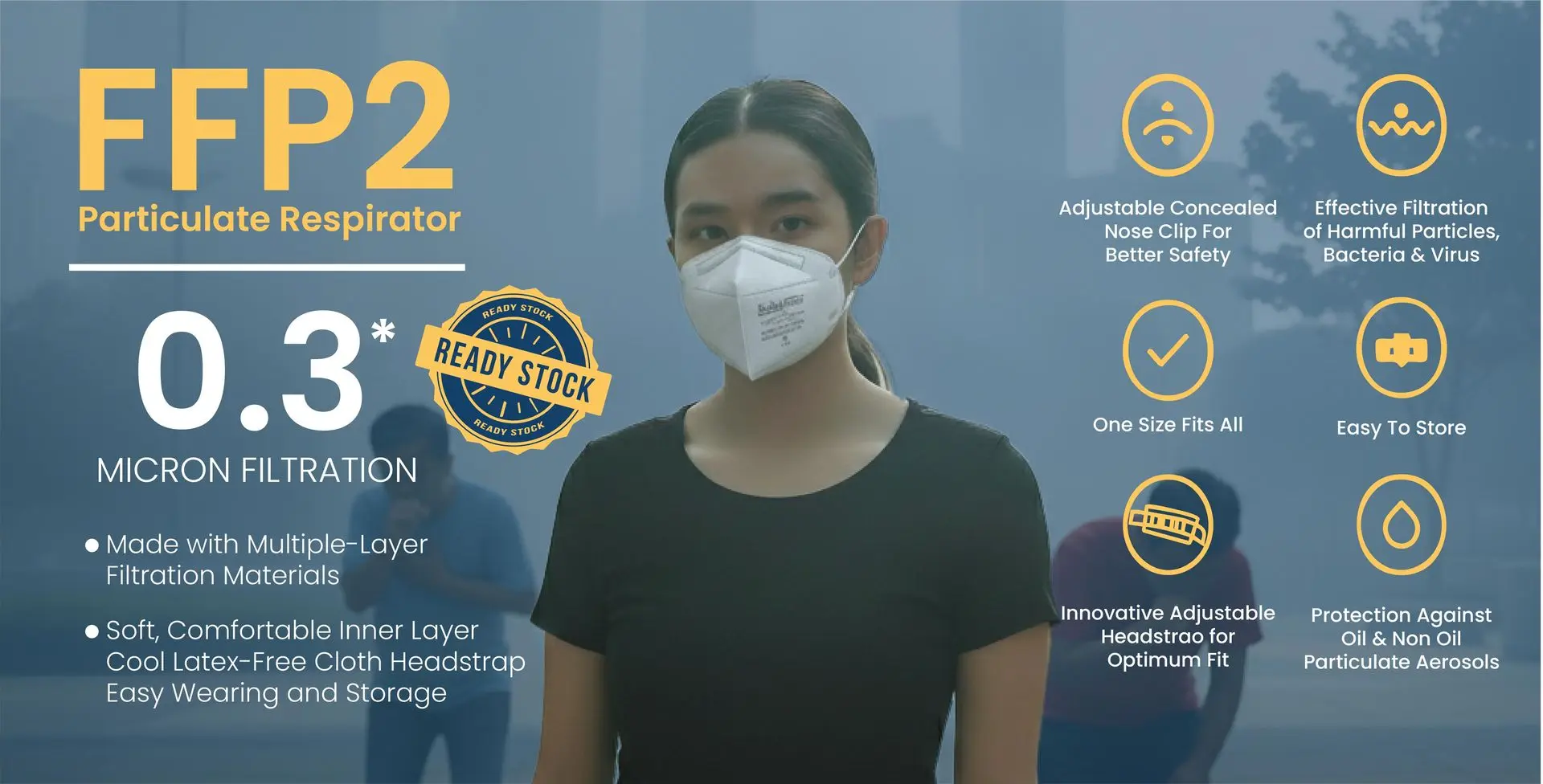 - ≥94% filtration for haze & dust (SIRIM & CE certified, cup shape)